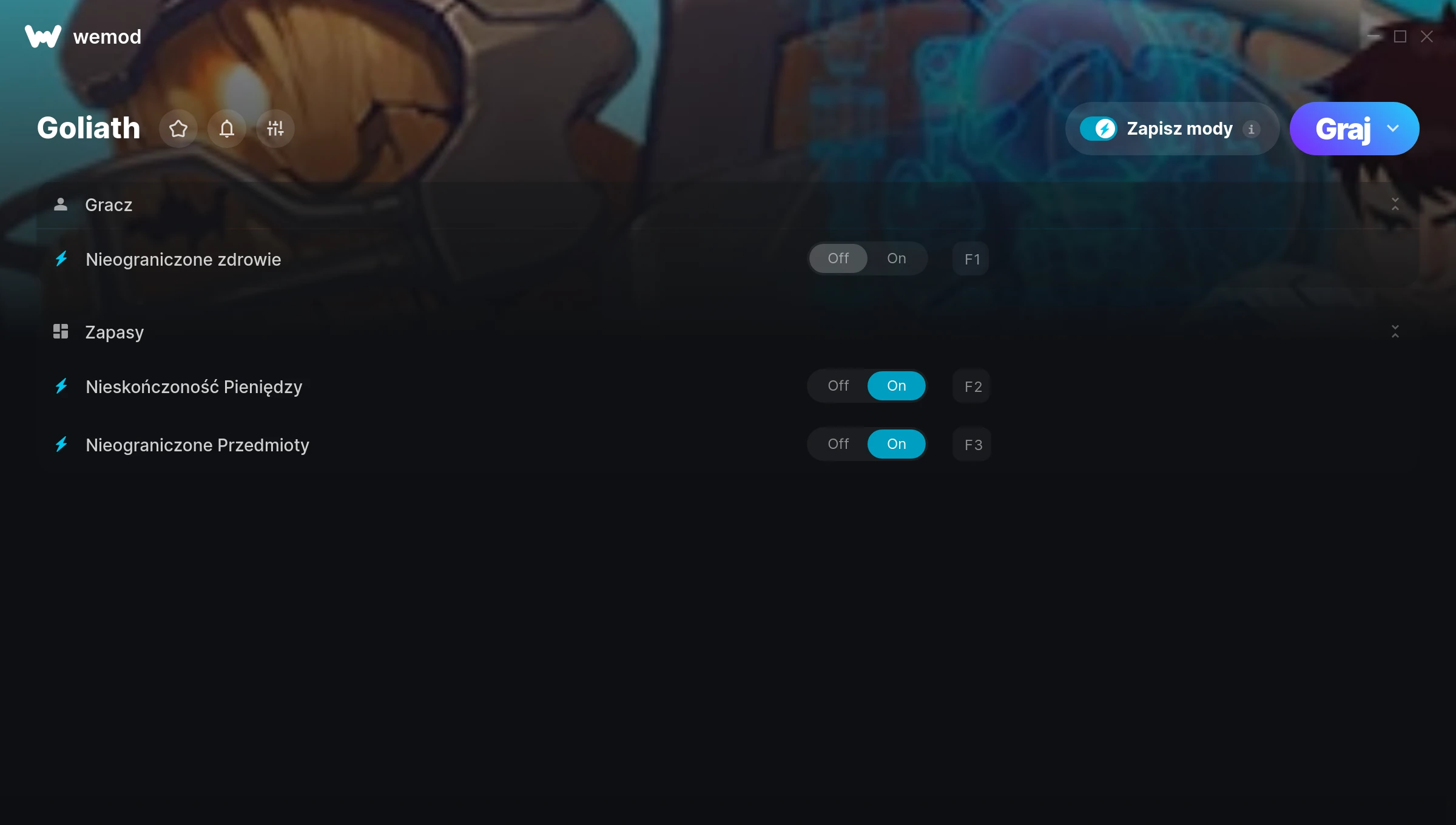 How do I use the cheats in Goliath?WeMod will safely display all of the games on your PC. Open a game from the list and simply press play. After the game loads and once you’re in-game, you can start enabling different cheats!Will this work with my game version?WeMod uses advanced technology to detect the game version you’re running and will let you know if it’s supported. If it’s not, you will still have the option of giving it a try or requesting an update!