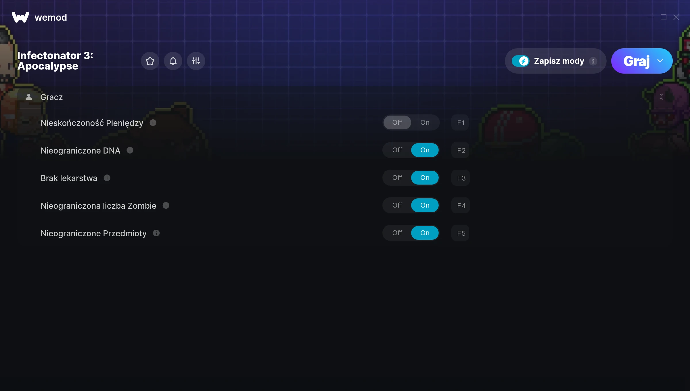 How do I use the cheats in Infectonator 3: Apocalypse?WeMod will safely display all of the games on your PC. Open a game from the list and simply press play. After the game loads and once you’re in-game, you can start enabling different cheats!Will this work with my game version?WeMod uses advanced technology to detect the game version you’re running and will let you know if it’s supported. If it’s not, you will still have the option of giving it a try or requesting an update!