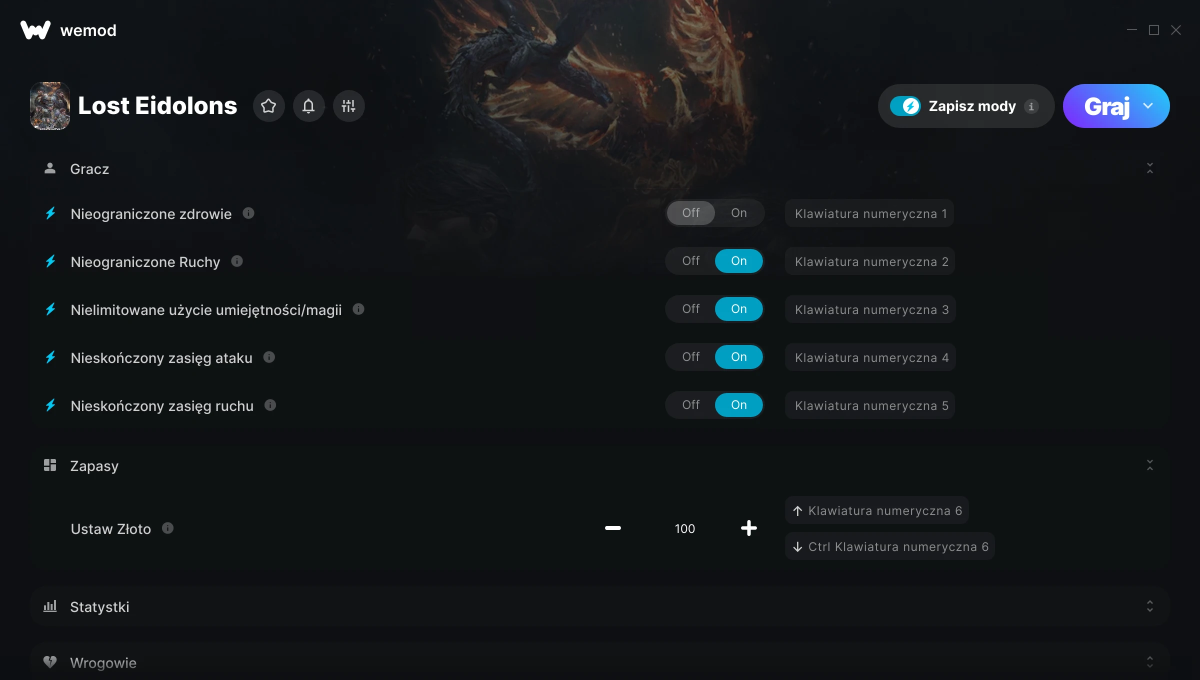 How do I use the cheats in Lost Eidolons?WeMod will safely display all of the games on your PC. Open a game from the list and simply press play. After the game loads and once you’re in-game, you can start enabling different cheats!Will this work with my game version?WeMod uses advanced technology to detect the game version you’re running and will let you know if it’s supported. If it’s not, you will still have the option of giving it a try or requesting an update!