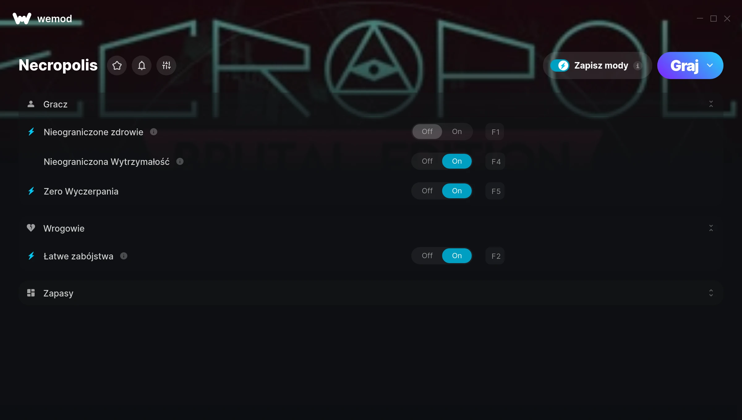 How do I use the cheats in Necropolis?WeMod will safely display all of the games on your PC. Open a game from the list and simply press play. After the game loads and once you’re in-game, you can start enabling different cheats!Will this work with my game version?WeMod uses advanced technology to detect the game version you’re running and will let you know if it’s supported. If it’s not, you will still have the option of giving it a try or requesting an update!