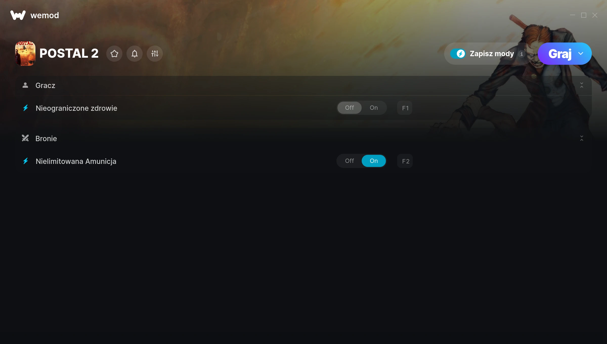 How do I use the cheats in POSTAL 2?WeMod will safely display all of the games on your PC. Open a game from the list and simply press play. After the game loads and once you’re in-game, you can start enabling different cheats!Will this work with my game version?WeMod uses advanced technology to detect the game version you’re running and will let you know if it’s supported. If it’s not, you will still have the option of giving it a try or requesting an update!