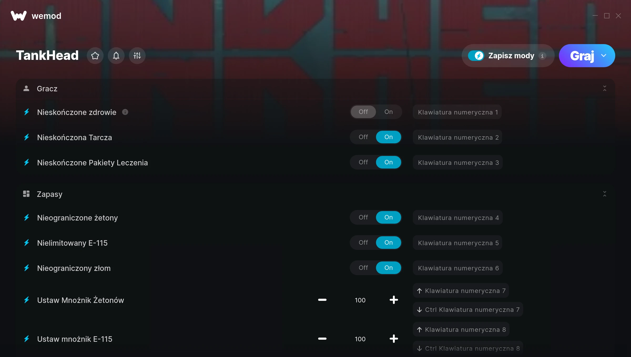 How do I use the cheats in TankHead?WeMod will safely display all of the games on your PC. Open a game from the list and simply press play. After the game loads and once you’re in-game, you can start enabling different cheats!Will this work with my game version?WeMod uses advanced technology to detect the game version you’re running and will let you know if it’s supported. If it’s not, you will still have the option of giving it a try or requesting an update!