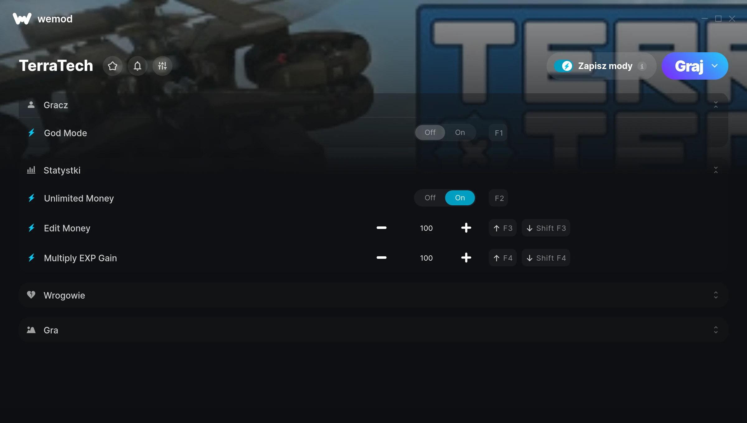 How do I use the cheats in TerraTech?WeMod will safely display all of the games on your PC. Open a game from the list and simply press play. After the game loads and once you’re in-game, you can start enabling different cheats!Will this work with my game version?WeMod uses advanced technology to detect the game version you’re running and will let you know if it’s supported. If it’s not, you will still have the option of giving it a try or requesting an update!
