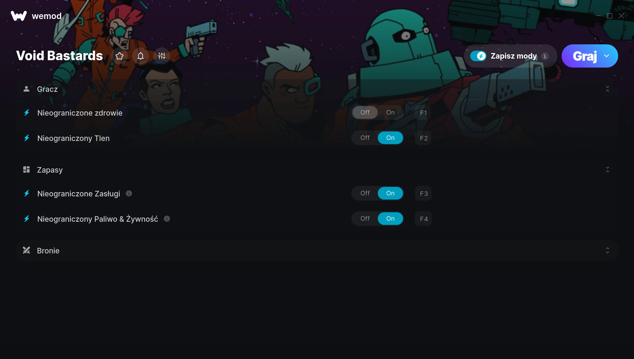 How do I use the cheats in Void Bastards?WeMod will safely display all of the games on your PC. Open a game from the list and simply press play. After the game loads and once you’re in-game, you can start enabling different cheats!Will this work with my game version?WeMod uses advanced technology to detect the game version you’re running and will let you know if it’s supported. If it’s not, you will still have the option of giving it a try or requesting an update!