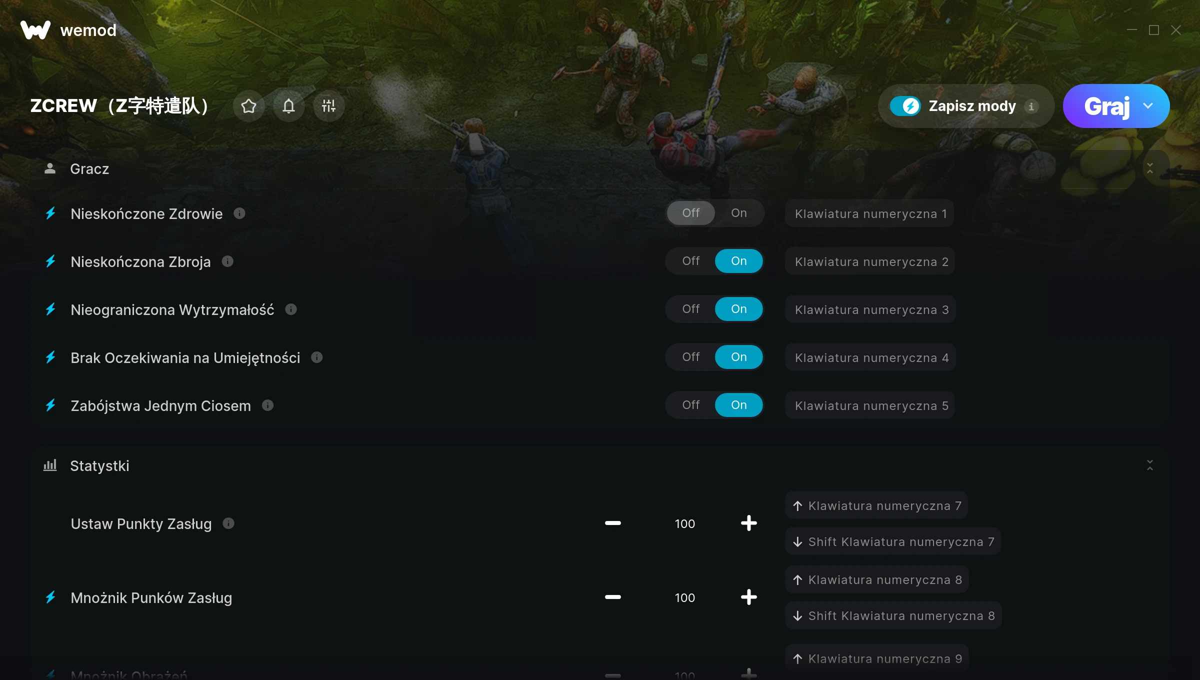 How do I use the cheats in ZCREW(Z字特遣队)?WeMod will safely display all of the games on your PC. Open a game from the list and simply press play. After the game loads and once you’re in-game, you can start enabling different cheats!Will this work with my game version?WeMod uses advanced technology to detect the game version you’re running and will let you know if it’s supported. If it’s not, you will still have the option of giving it a try or requesting an update!
