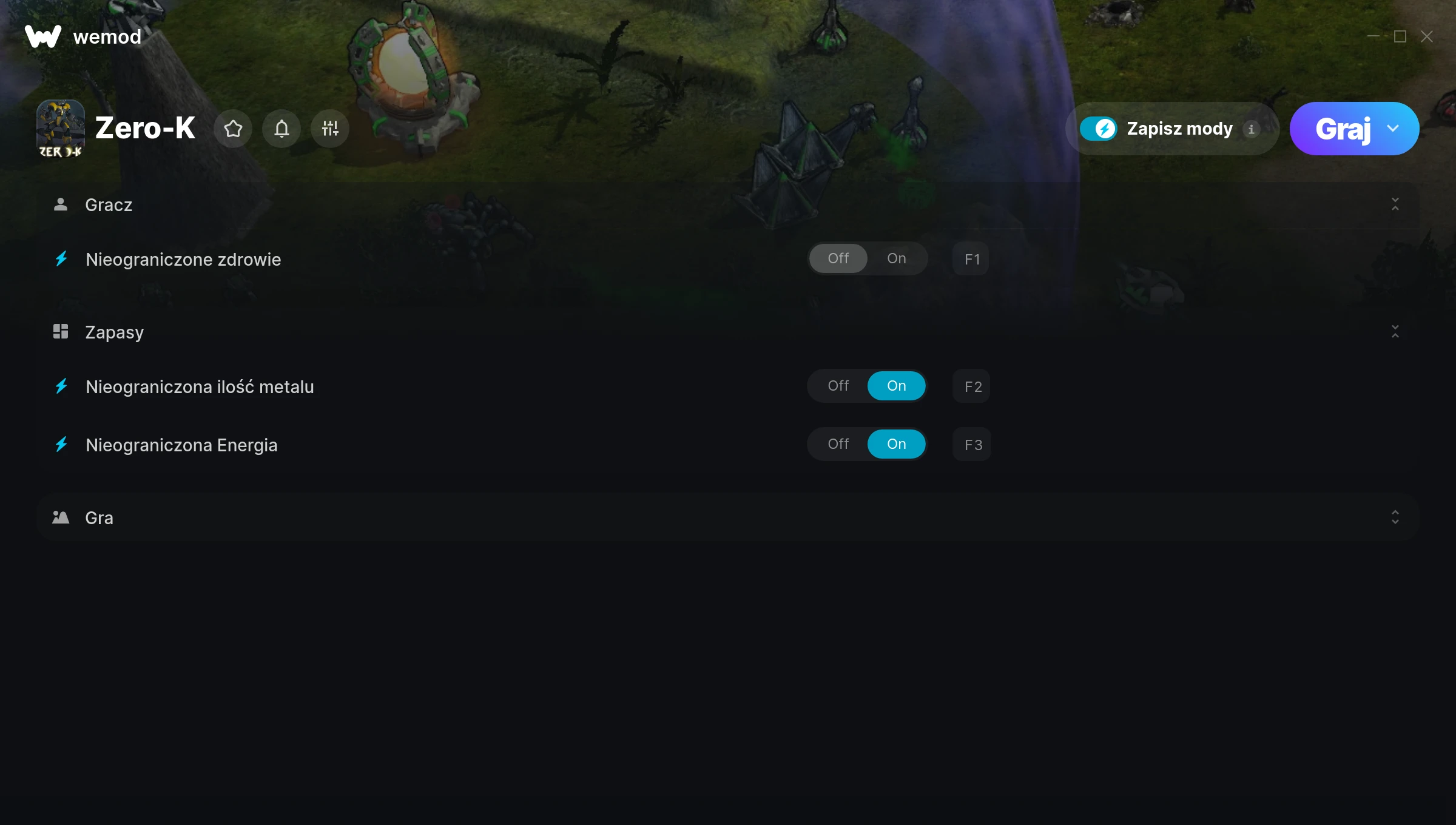 How do I use the cheats in Zero-K?WeMod will safely display all of the games on your PC. Open a game from the list and simply press play. After the game loads and once you’re in-game, you can start enabling different cheats!Will this work with my game version?WeMod uses advanced technology to detect the game version you’re running and will let you know if it’s supported. If it’s not, you will still have the option of giving it a try or requesting an update!
