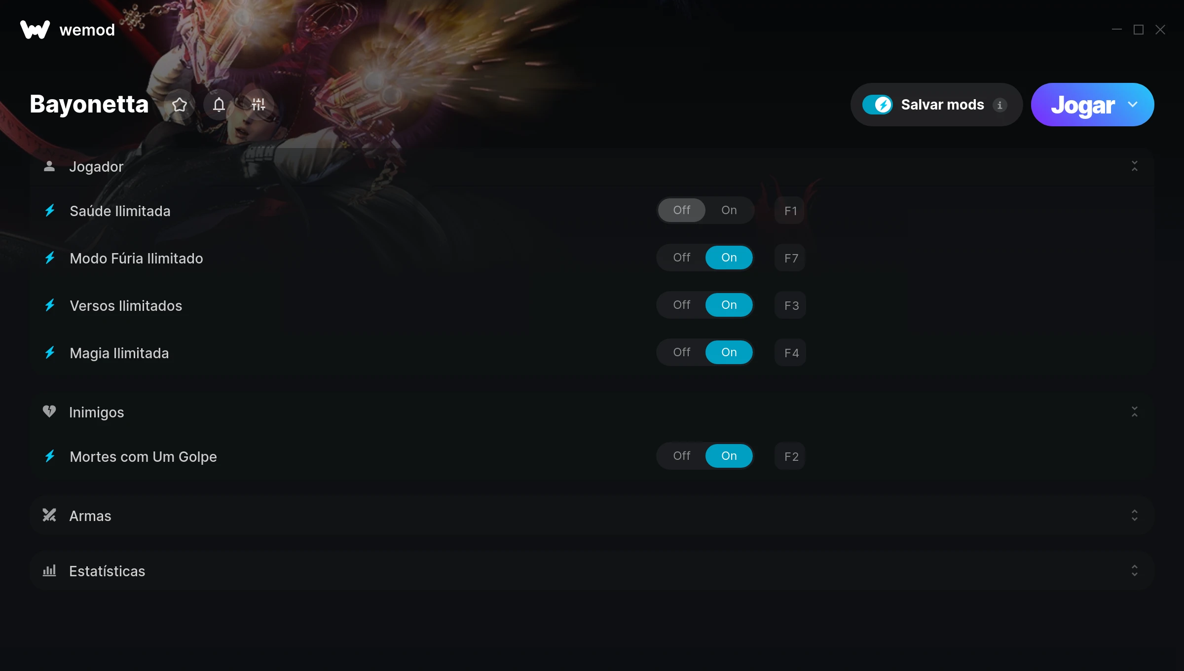 How do I use the cheats in Bayonetta?WeMod will safely display all of the games on your PC. Open a game from the list and simply press play. After the game loads and once you’re in-game, you can start enabling different cheats!Will this work with my game version?WeMod uses advanced technology to detect the game version you’re running and will let you know if it’s supported. If it’s not, you will still have the option of giving it a try or requesting an update!