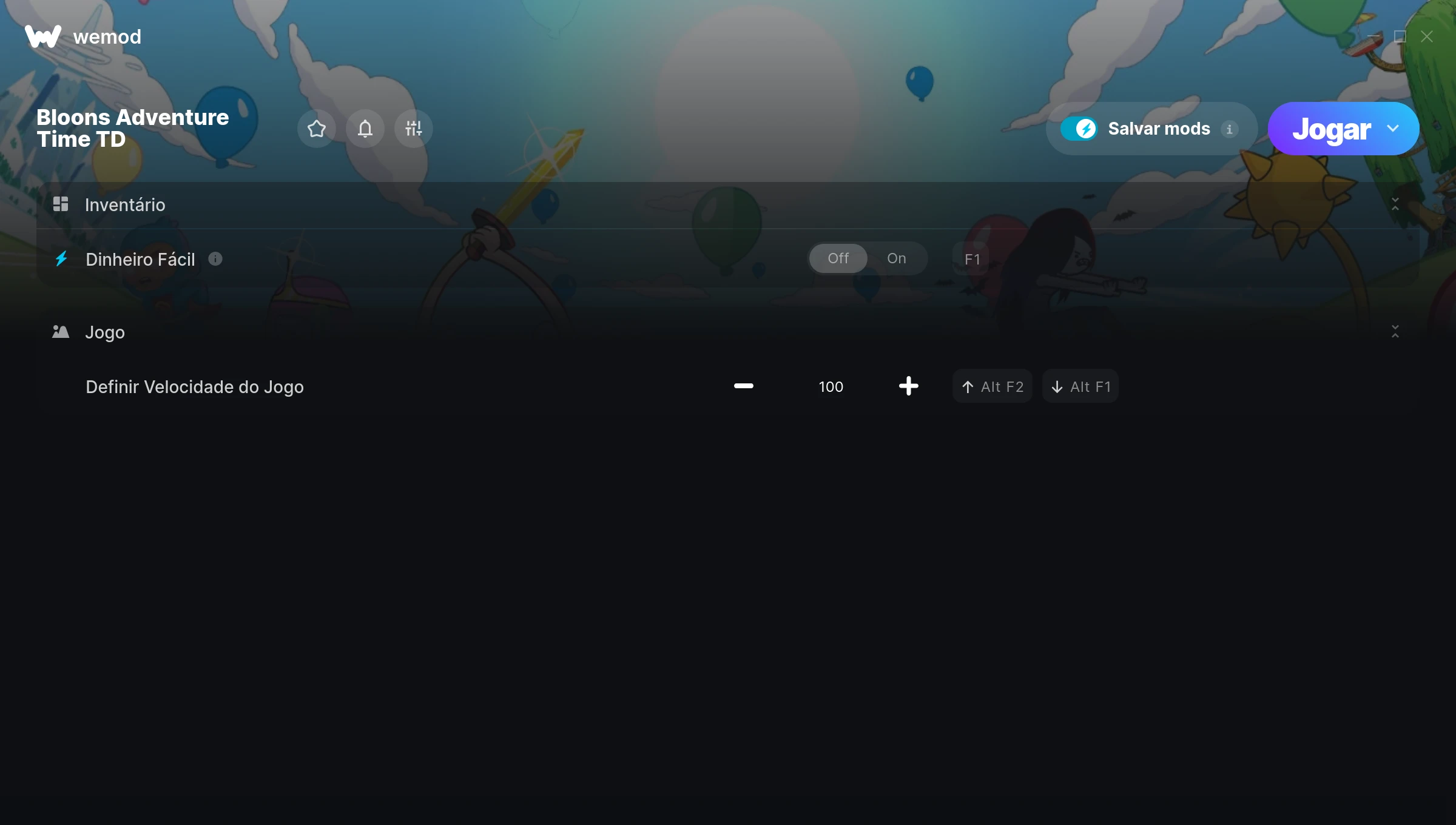 How do I use the cheats in Bloons Adventure Time TD?WeMod will safely display all of the games on your PC. Open a game from the list and simply press play. After the game loads and once you’re in-game, you can start enabling different cheats!Will this work with my game version?WeMod uses advanced technology to detect the game version you’re running and will let you know if it’s supported. If it’s not, you will still have the option of giving it a try or requesting an update!