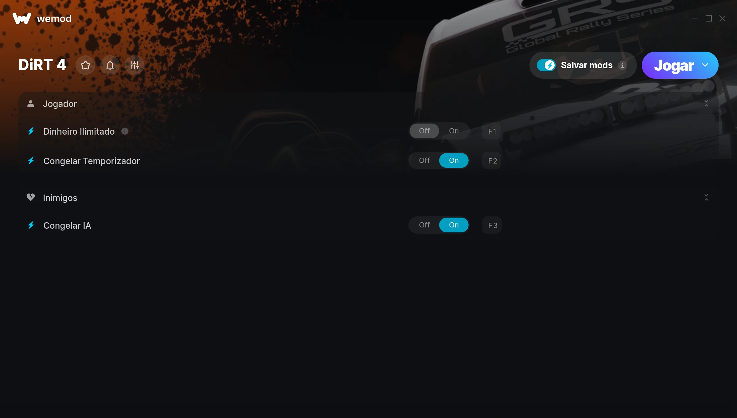 How do I use the cheats in DiRT 4?WeMod will safely display all of the games on your PC. Open a game from the list and simply press play. After the game loads and once you’re in-game, you can start enabling different cheats!Will this work with my game version?WeMod uses advanced technology to detect the game version you’re running and will let you know if it’s supported. If it’s not, you will still have the option of giving it a try or requesting an update!