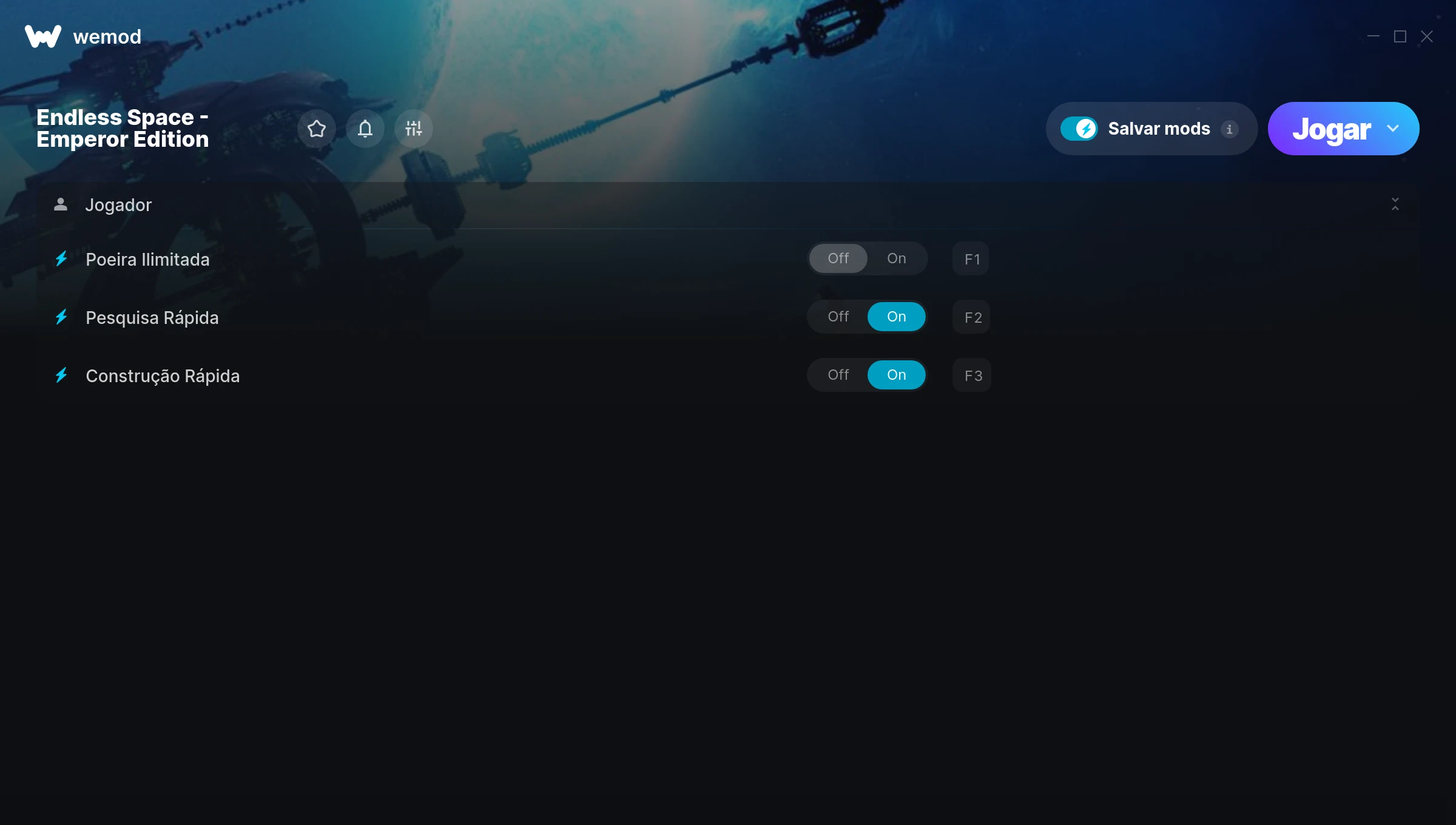How do I use the cheats in Endless Space - Emperor Edition?WeMod will safely display all of the games on your PC. Open a game from the list and simply press play. After the game loads and once you’re in-game, you can start enabling different cheats!Will this work with my game version?WeMod uses advanced technology to detect the game version you’re running and will let you know if it’s supported. If it’s not, you will still have the option of giving it a try or requesting an update!