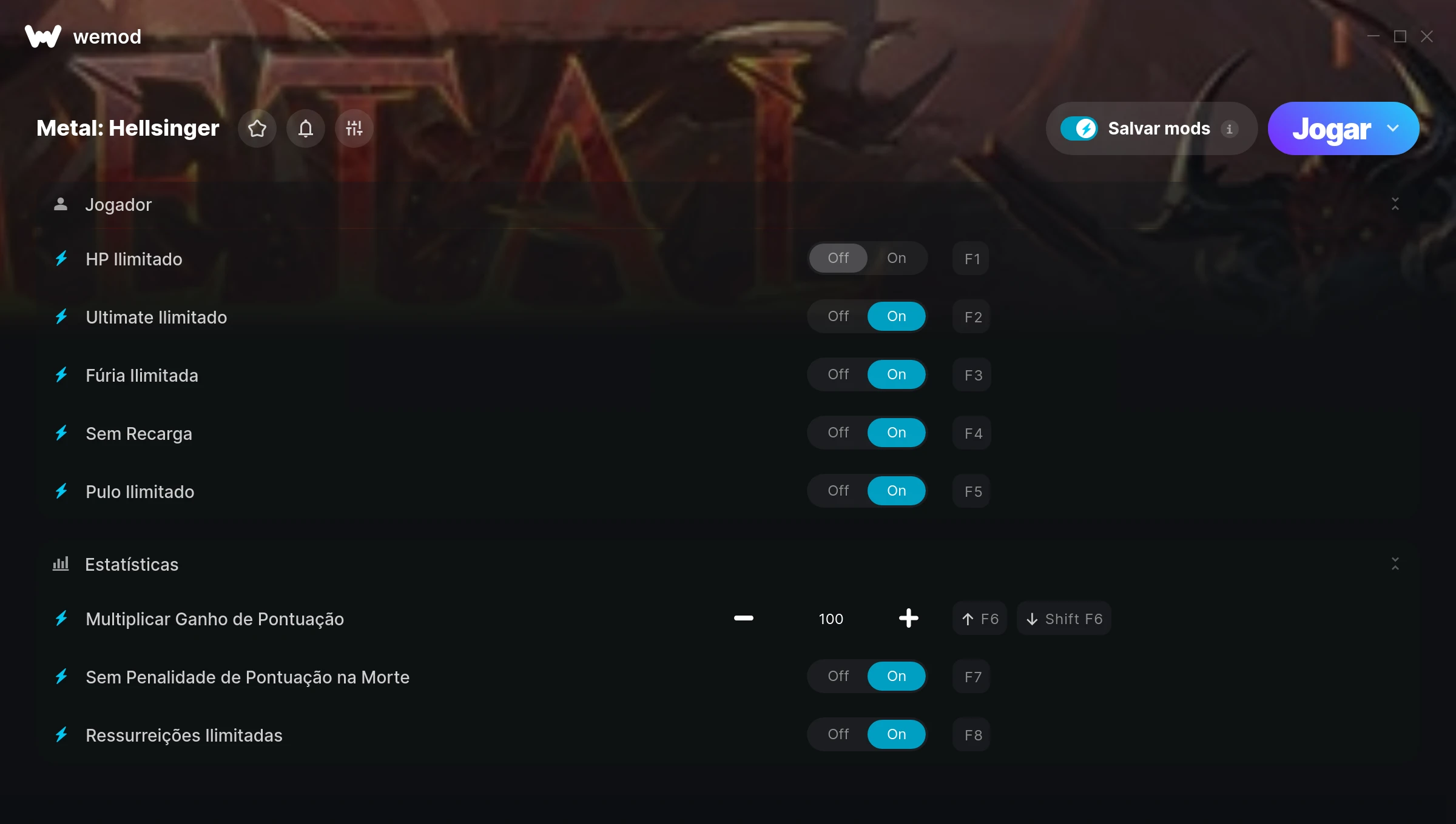 How do I use the cheats in Metal: Hellsinger?WeMod will safely display all of the games on your PC. Open a game from the list and simply press play. After the game loads and once you’re in-game, you can start enabling different cheats!Will this work with my game version?WeMod uses advanced technology to detect the game version you’re running and will let you know if it’s supported. If it’s not, you will still have the option of giving it a try or requesting an update!