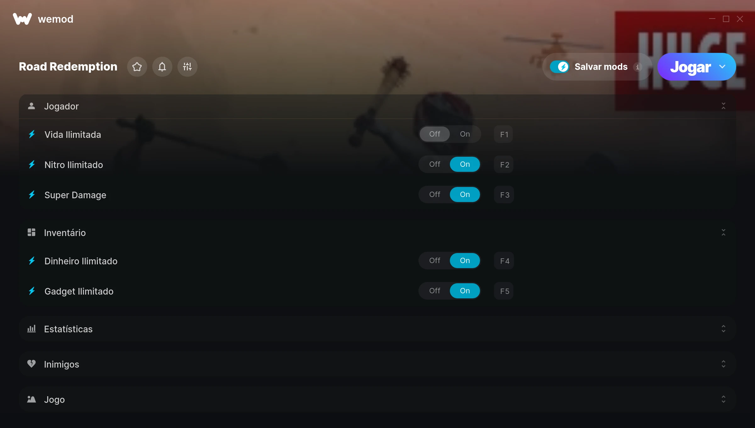 How do I use the cheats in Road Redemption?WeMod will safely display all of the games on your PC. Open a game from the list and simply press play. After the game loads and once you’re in-game, you can start enabling different cheats!Will this work with my game version?WeMod uses advanced technology to detect the game version you’re running and will let you know if it’s supported. If it’s not, you will still have the option of giving it a try or requesting an update!