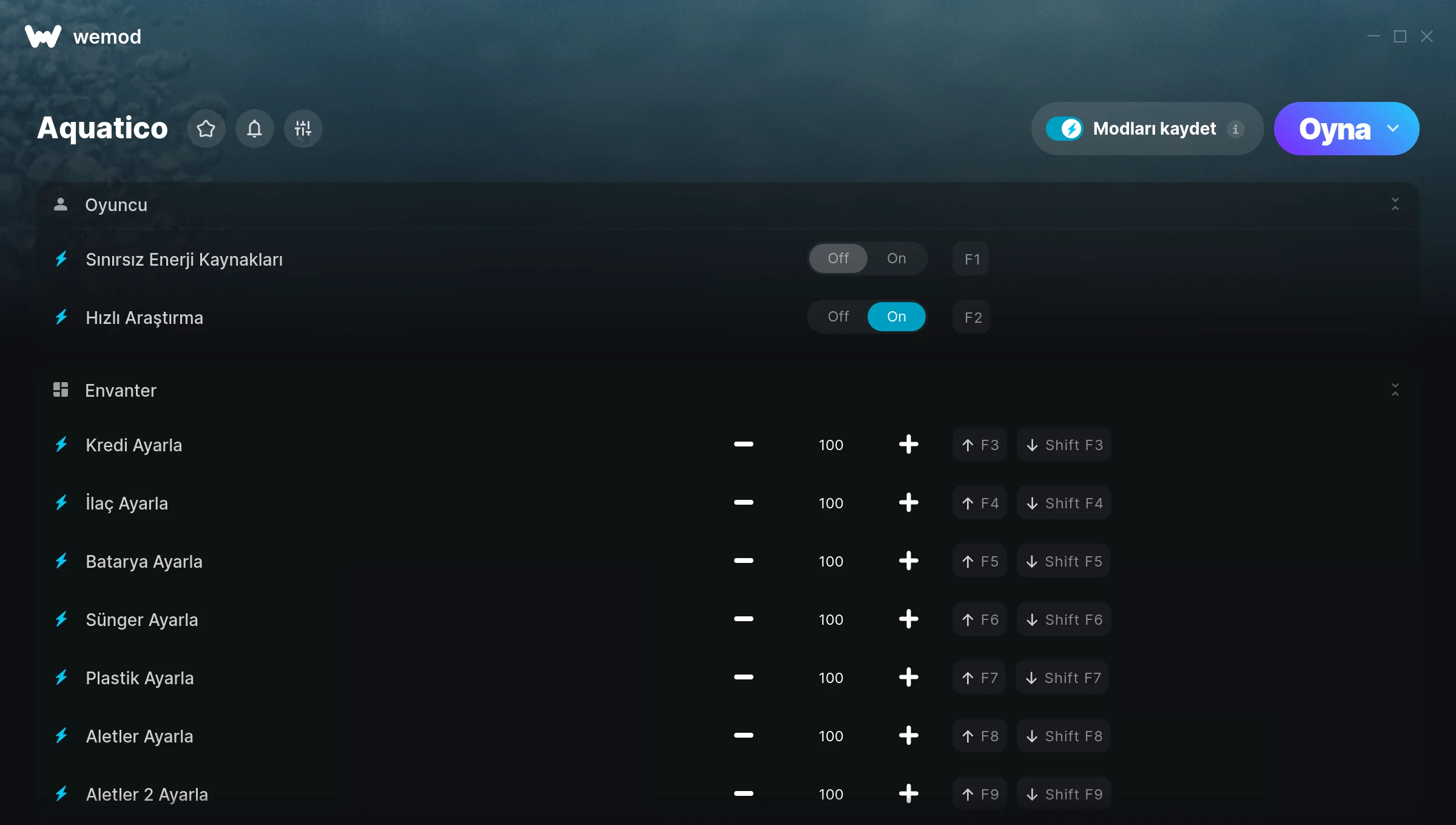 How do I use the cheats in Aquatico?WeMod will safely display all of the games on your PC. Open a game from the list and simply press play. After the game loads and once you’re in-game, you can start enabling different cheats!Will this work with my game version?WeMod uses advanced technology to detect the game version you’re running and will let you know if it’s supported. If it’s not, you will still have the option of giving it a try or requesting an update!