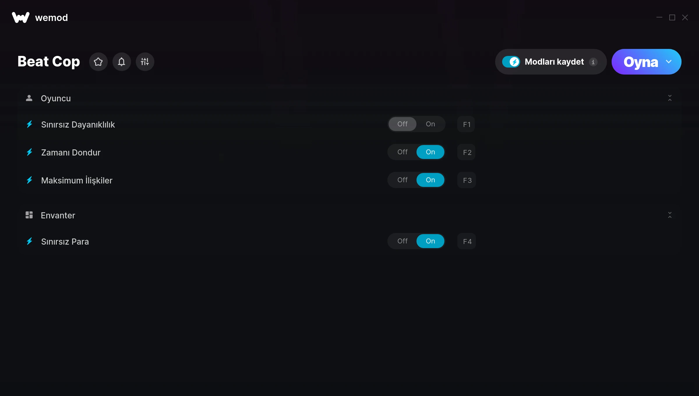 How do I use the cheats in Beat Cop?WeMod will safely display all of the games on your PC. Open a game from the list and simply press play. After the game loads and once you’re in-game, you can start enabling different cheats!Will this work with my game version?WeMod uses advanced technology to detect the game version you’re running and will let you know if it’s supported. If it’s not, you will still have the option of giving it a try or requesting an update!