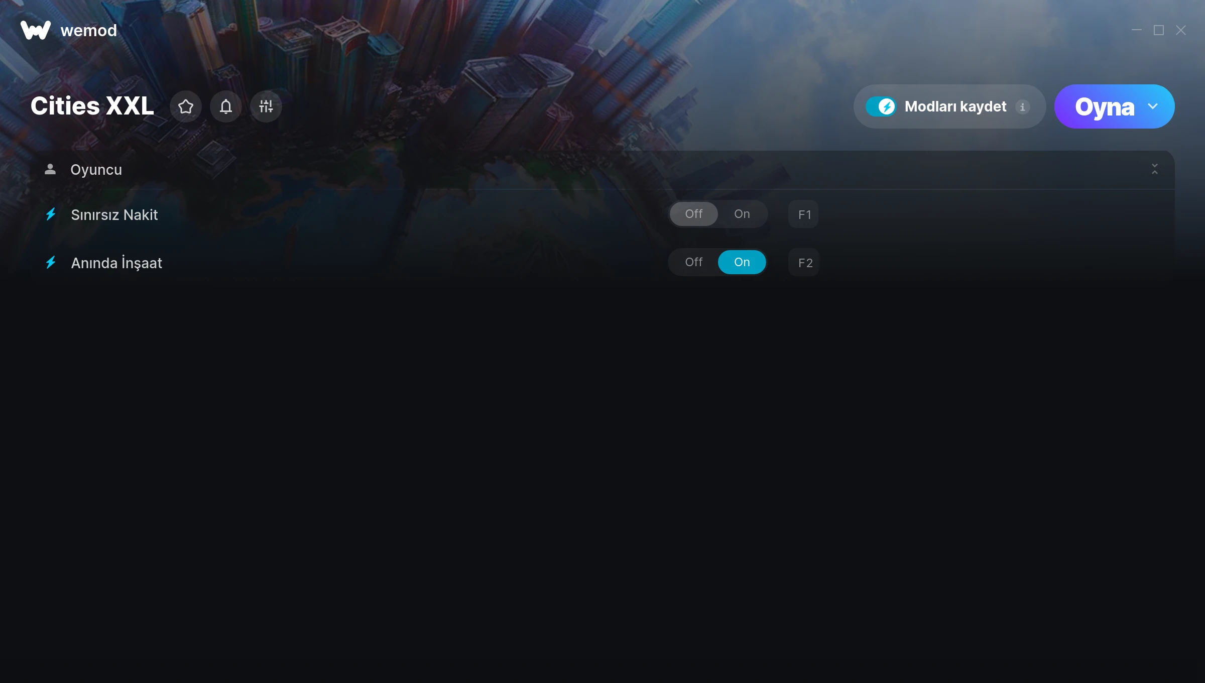 How do I use the cheats in Cities XXL?WeMod will safely display all of the games on your PC. Open a game from the list and simply press play. After the game loads and once you’re in-game, you can start enabling different cheats!Will this work with my game version?WeMod uses advanced technology to detect the game version you’re running and will let you know if it’s supported. If it’s not, you will still have the option of giving it a try or requesting an update!