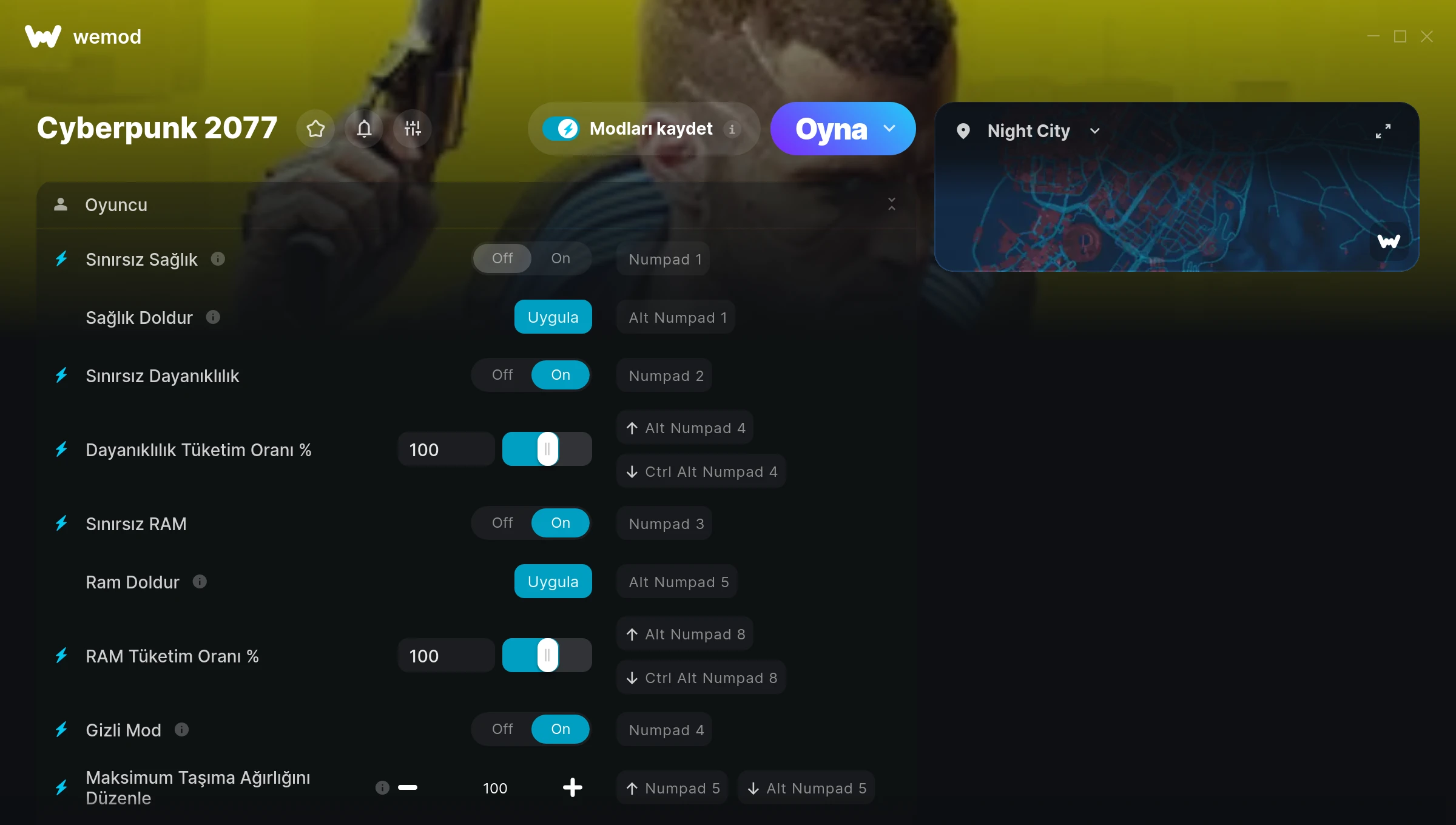 How do I use the cheats in Cyberpunk 2077?WeMod will safely display all of the games on your PC. Open a game from the list and simply press play. After the game loads and once you’re in-game, you can start enabling different cheats!Will this work with my game version?WeMod uses advanced technology to detect the game version you’re running and will let you know if it’s supported. If it’s not, you will still have the option of giving it a try or requesting an update!