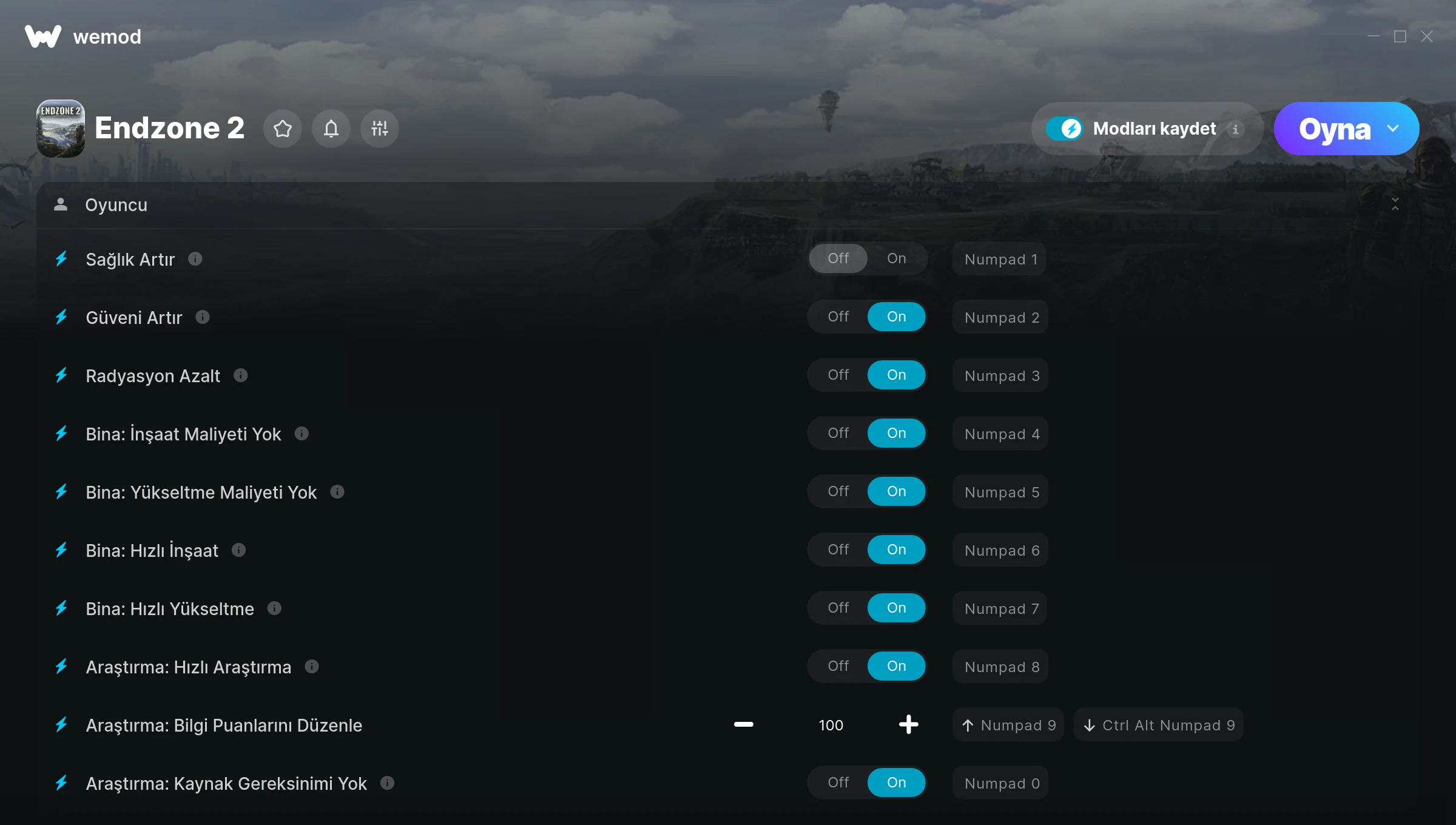 How do I use the cheats in Endzone 2?WeMod will safely display all of the games on your PC. Open a game from the list and simply press play. After the game loads and once you’re in-game, you can start enabling different cheats!Will this work with my game version?WeMod uses advanced technology to detect the game version you’re running and will let you know if it’s supported. If it’s not, you will still have the option of giving it a try or requesting an update!