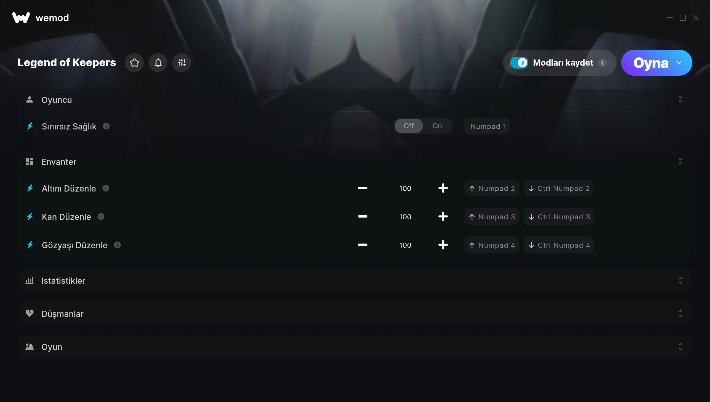 How do I use the cheats in Legend of Keepers?WeMod will safely display all of the games on your PC. Open a game from the list and simply press play. After the game loads and once you’re in-game, you can start enabling different cheats!Will this work with my game version?WeMod uses advanced technology to detect the game version you’re running and will let you know if it’s supported. If it’s not, you will still have the option of giving it a try or requesting an update!