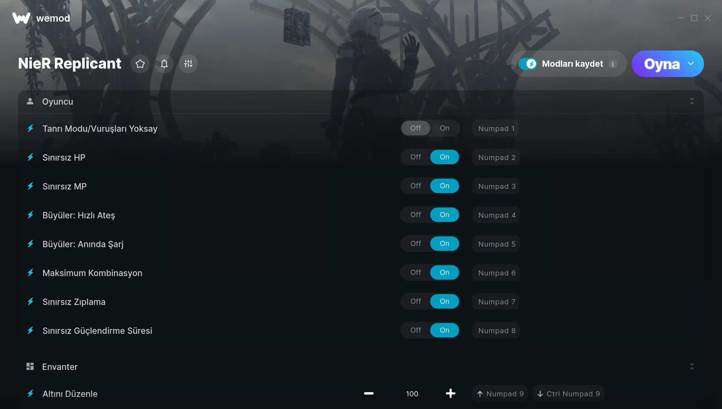 How do I use the cheats in NieR Replicant?WeMod will safely display all of the games on your PC. Open a game from the list and simply press play. After the game loads and once you’re in-game, you can start enabling different cheats!Will this work with my game version?WeMod uses advanced technology to detect the game version you’re running and will let you know if it’s supported. If it’s not, you will still have the option of giving it a try or requesting an update!