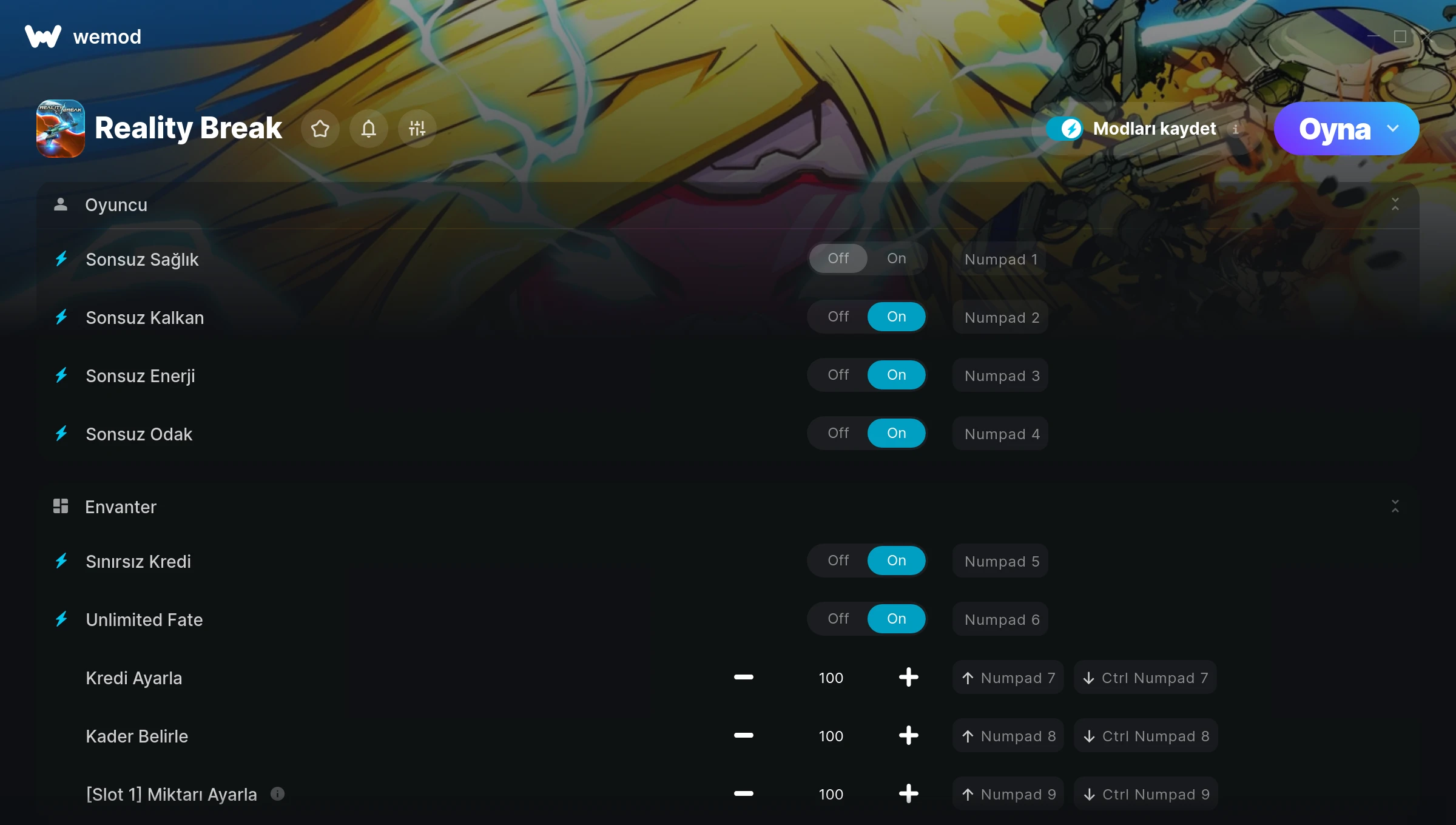 How do I use the cheats in Reality Break?WeMod will safely display all of the games on your PC. Open a game from the list and simply press play. After the game loads and once you’re in-game, you can start enabling different cheats!Will this work with my game version?WeMod uses advanced technology to detect the game version you’re running and will let you know if it’s supported. If it’s not, you will still have the option of giving it a try or requesting an update!
