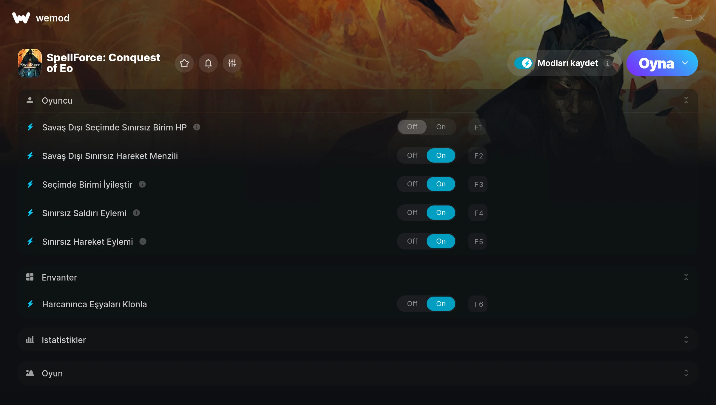 How do I use the cheats in SpellForce: Conquest of Eo?WeMod will safely display all of the games on your PC. Open a game from the list and simply press play. After the game loads and once you’re in-game, you can start enabling different cheats!Will this work with my game version?WeMod uses advanced technology to detect the game version you’re running and will let you know if it’s supported. If it’s not, you will still have the option of giving it a try or requesting an update!