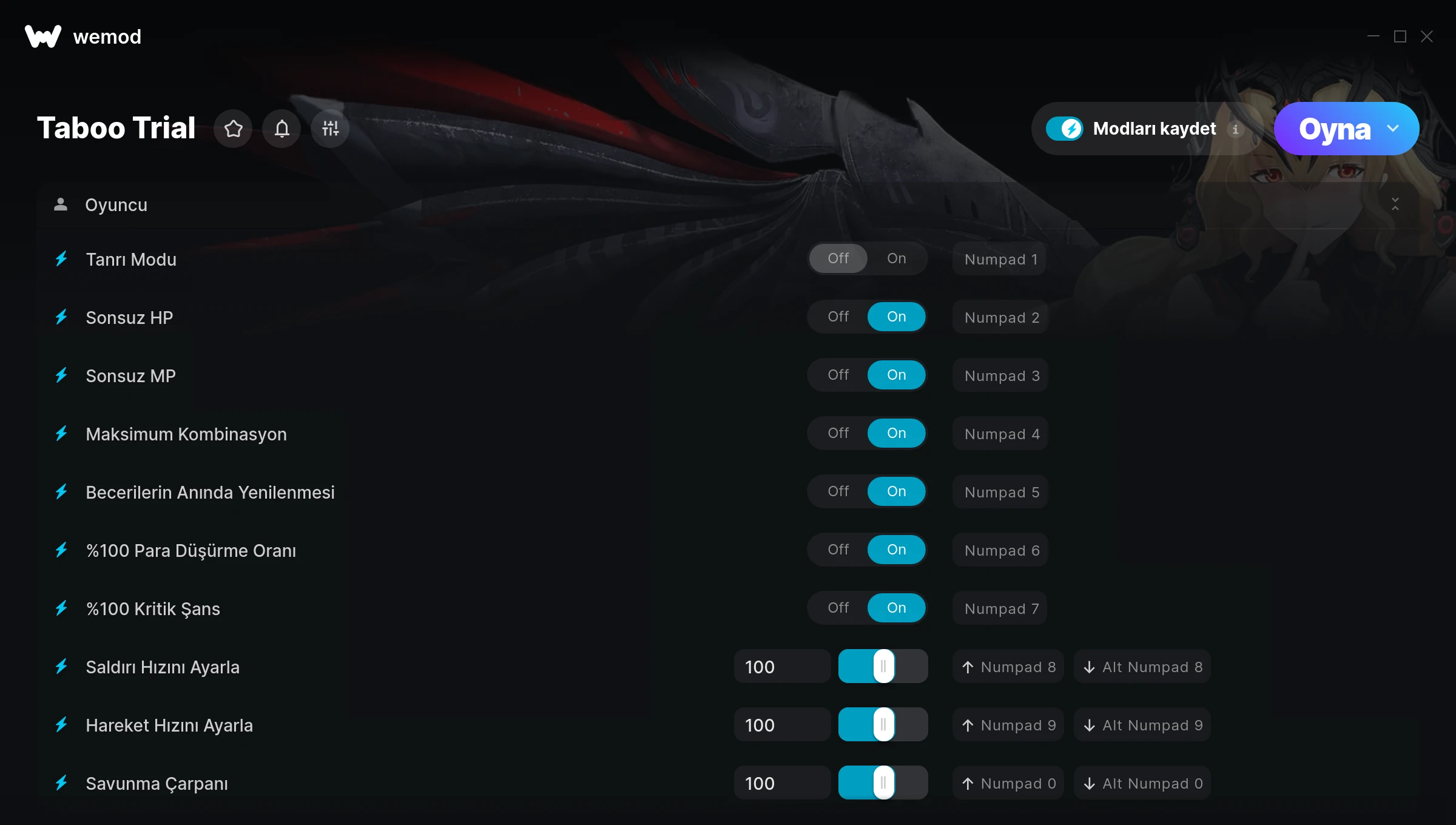 How do I use the cheats in Taboo Trial?WeMod will safely display all of the games on your PC. Open a game from the list and simply press play. After the game loads and once you’re in-game, you can start enabling different cheats!Will this work with my game version?WeMod uses advanced technology to detect the game version you’re running and will let you know if it’s supported. If it’s not, you will still have the option of giving it a try or requesting an update!