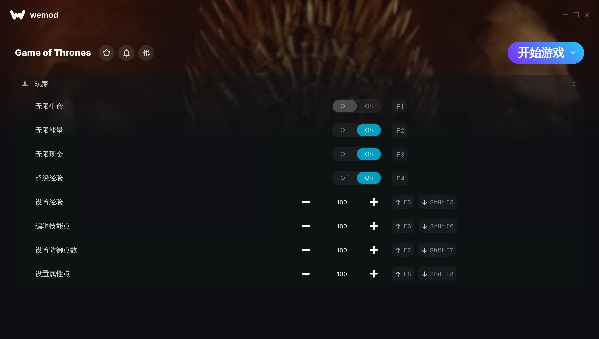 How do I use the cheats in Game of Thrones?WeMod will safely display all of the games on your PC. Open a game from the list and simply press play. After the game loads and once you’re in-game, you can start enabling different cheats!Will this work with my game version?WeMod uses advanced technology to detect the game version you’re running and will let you know if it’s supported. If it’s not, you will still have the option of giving it a try or requesting an update!
