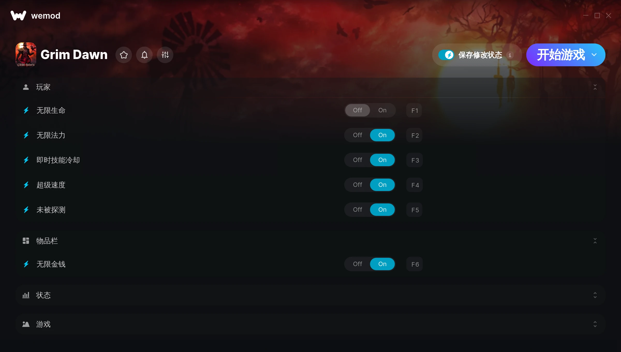 How do I use the cheats in Grim Dawn?WeMod will safely display all of the games on your PC. Open a game from the list and simply press play. After the game loads and once you’re in-game, you can start enabling different cheats!Will this work with my game version?WeMod uses advanced technology to detect the game version you’re running and will let you know if it’s supported. If it’s not, you will still have the option of giving it a try or requesting an update!
