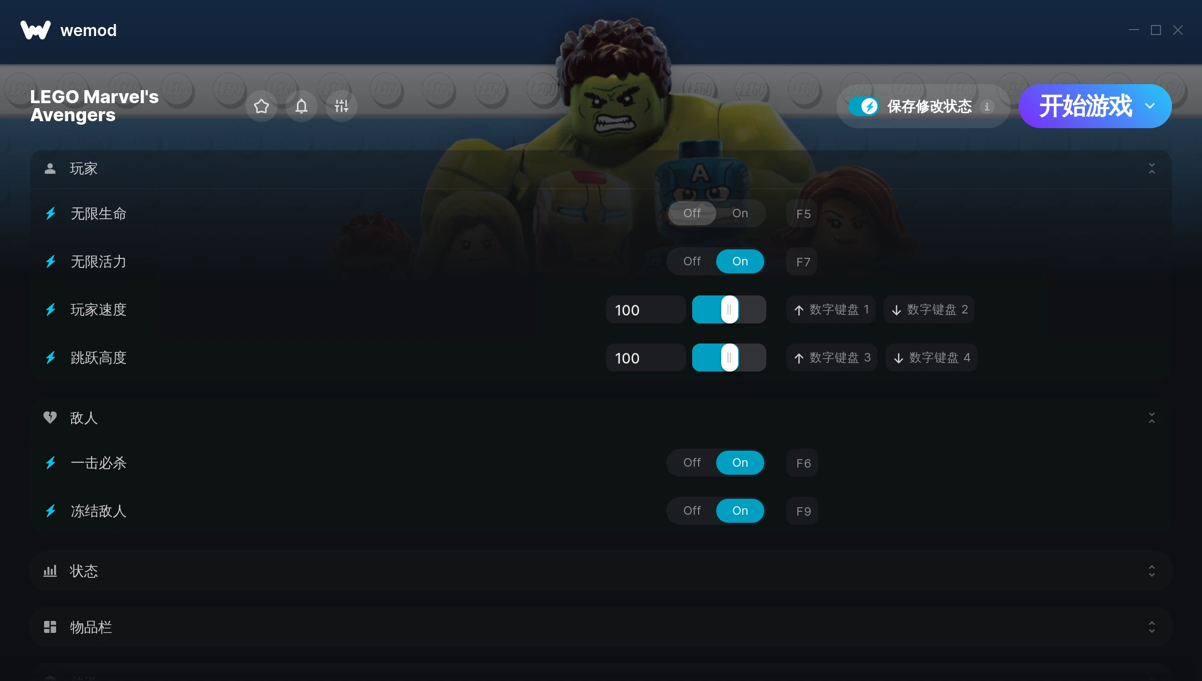 How do I use the cheats in LEGO Marvel's Avengers?WeMod will safely display all of the games on your PC. Open a game from the list and simply press play. After the game loads and once you’re in-game, you can start enabling different cheats!Will this work with my game version?WeMod uses advanced technology to detect the game version you’re running and will let you know if it’s supported. If it’s not, you will still have the option of giving it a try or requesting an update!