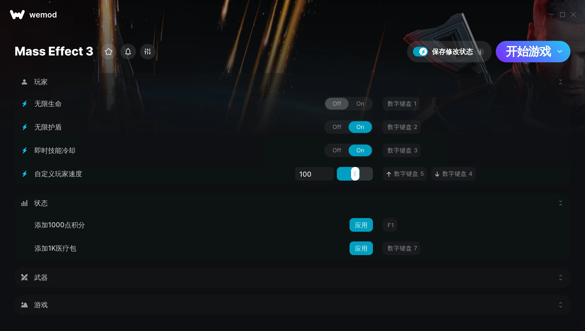 How do I use the cheats in Mass Effect 3?WeMod will safely display all of the games on your PC. Open a game from the list and simply press play. After the game loads and once you’re in-game, you can start enabling different cheats!Will this work with my game version?WeMod uses advanced technology to detect the game version you’re running and will let you know if it’s supported. If it’s not, you will still have the option of giving it a try or requesting an update!