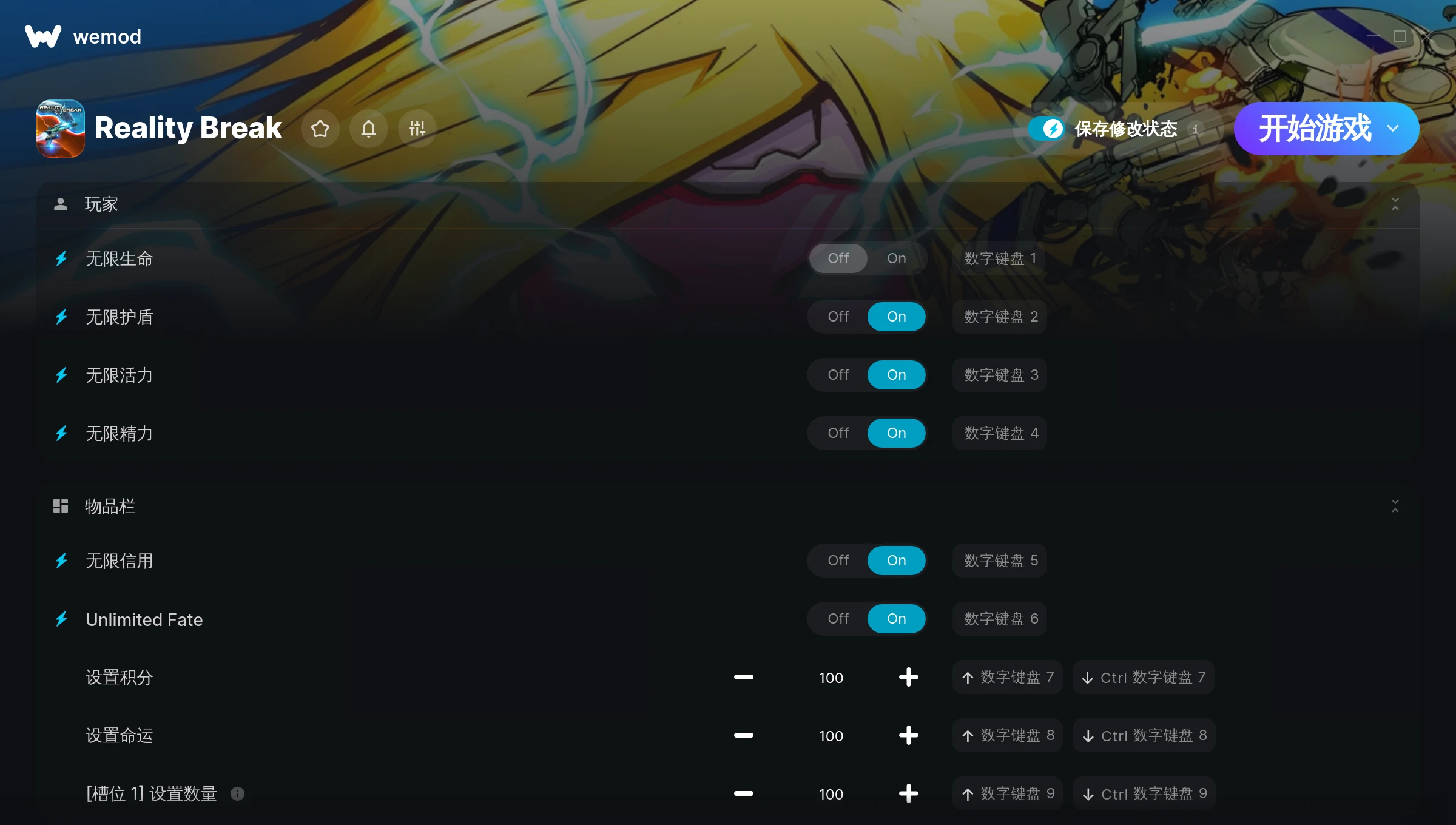 How do I use the cheats in Reality Break?WeMod will safely display all of the games on your PC. Open a game from the list and simply press play. After the game loads and once you’re in-game, you can start enabling different cheats!Will this work with my game version?WeMod uses advanced technology to detect the game version you’re running and will let you know if it’s supported. If it’s not, you will still have the option of giving it a try or requesting an update!