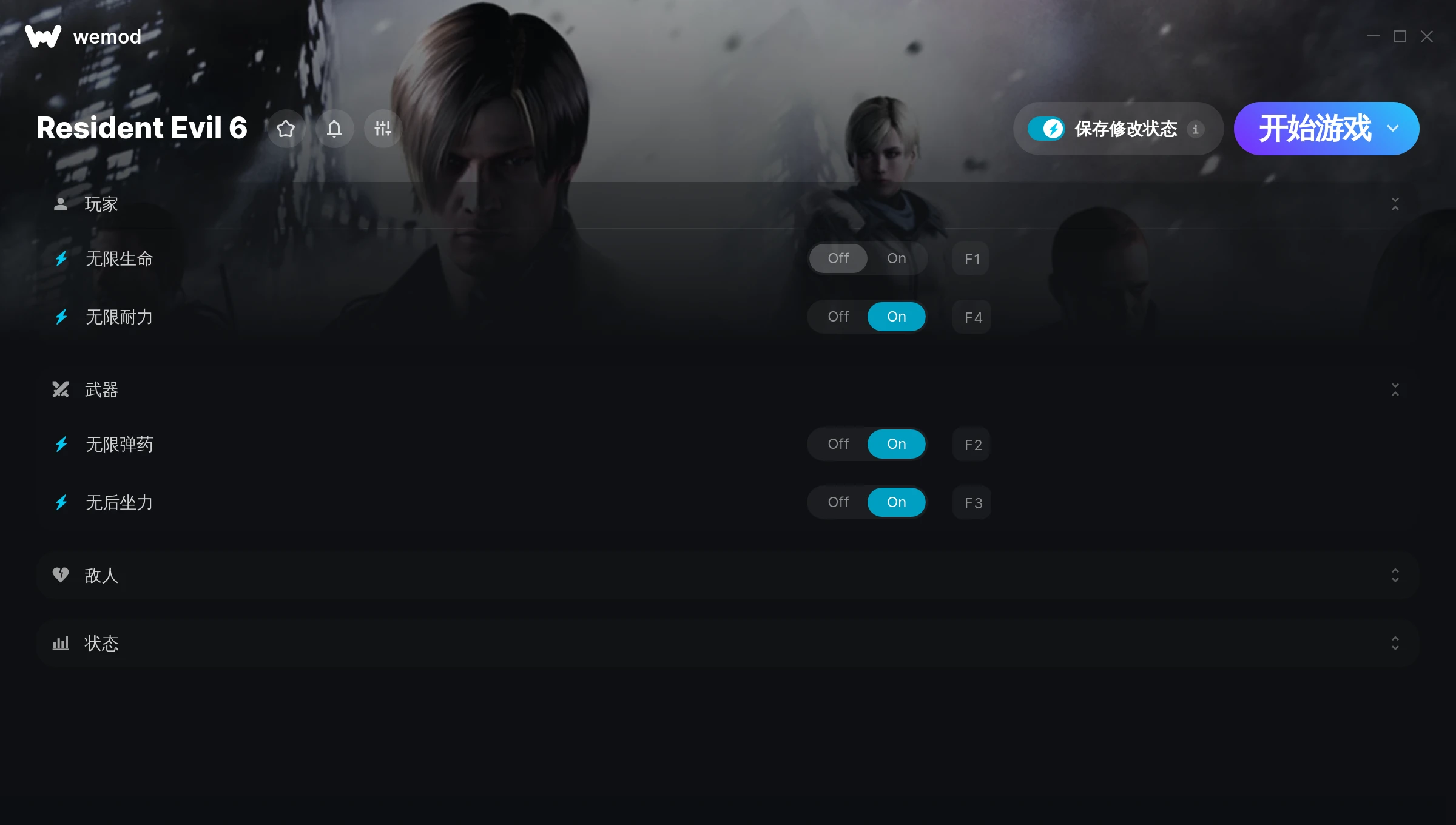 How do I use the cheats in Resident Evil 6?WeMod will safely display all of the games on your PC. Open a game from the list and simply press play. After the game loads and once you’re in-game, you can start enabling different cheats!Will this work with my game version?WeMod uses advanced technology to detect the game version you’re running and will let you know if it’s supported. If it’s not, you will still have the option of giving it a try or requesting an update!