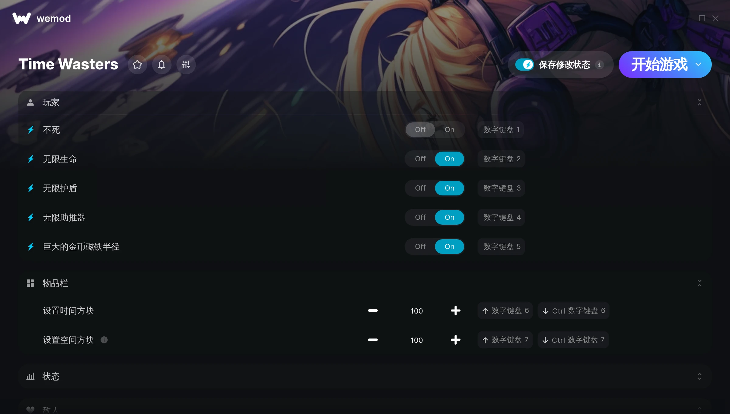 How do I use the cheats in Time Wasters?WeMod will safely display all of the games on your PC. Open a game from the list and simply press play. After the game loads and once you’re in-game, you can start enabling different cheats!Will this work with my game version?WeMod uses advanced technology to detect the game version you’re running and will let you know if it’s supported. If it’s not, you will still have the option of giving it a try or requesting an update!