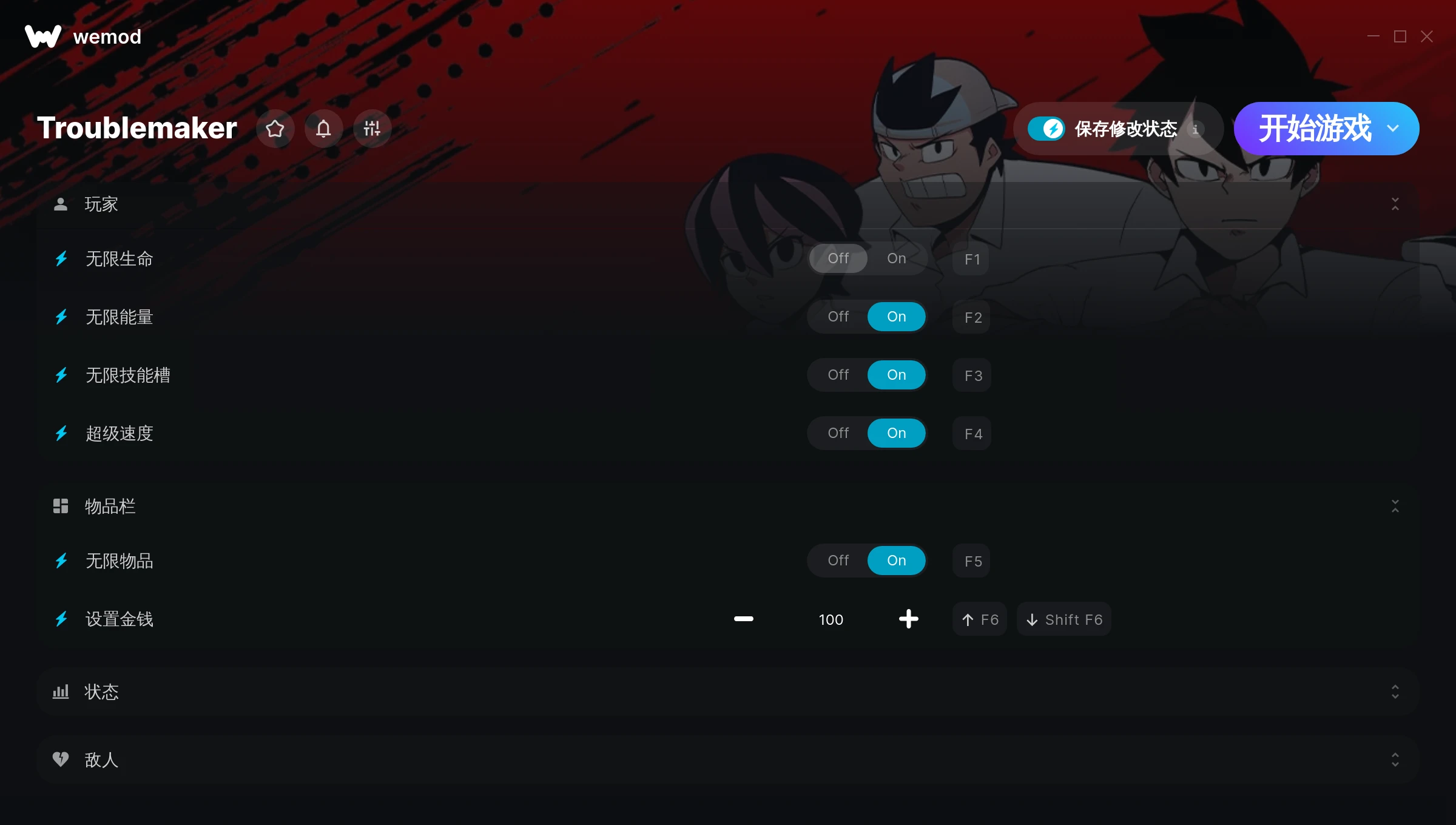 How do I use the cheats in Troublemaker?WeMod will safely display all of the games on your PC. Open a game from the list and simply press play. After the game loads and once you’re in-game, you can start enabling different cheats!Will this work with my game version?WeMod uses advanced technology to detect the game version you’re running and will let you know if it’s supported. If it’s not, you will still have the option of giving it a try or requesting an update!