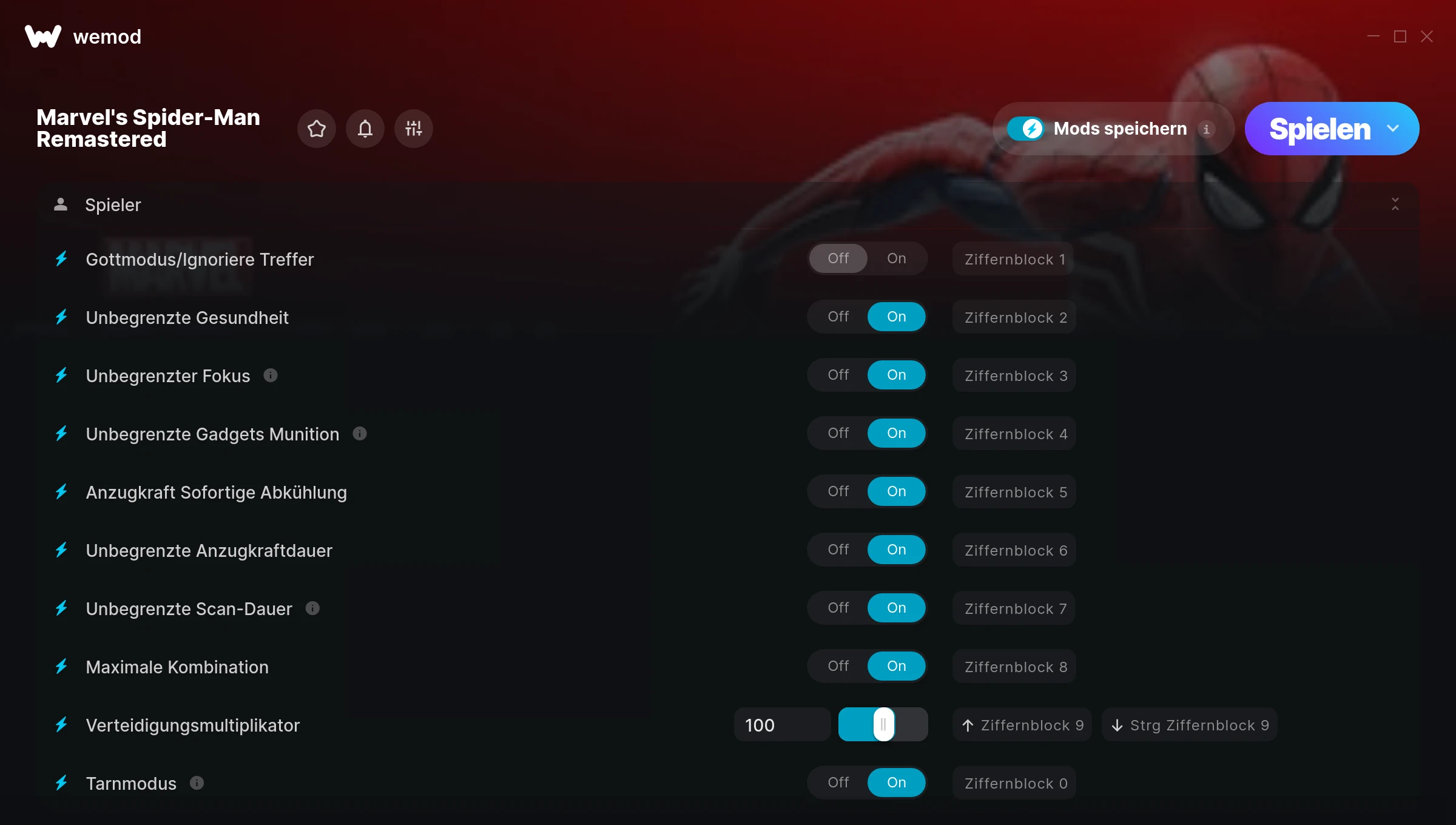 How do I use the cheats in Marvel's Spider-Man Remastered?WeMod will safely display all of the games on your PC. Open a game from the list and simply press play. After the game loads and once you’re in-game, you can start enabling different cheats!Will this work with my game version?WeMod uses advanced technology to detect the game version you’re running and will let you know if it’s supported. If it’s not, you will still have the option of giving it a try or requesting an update!