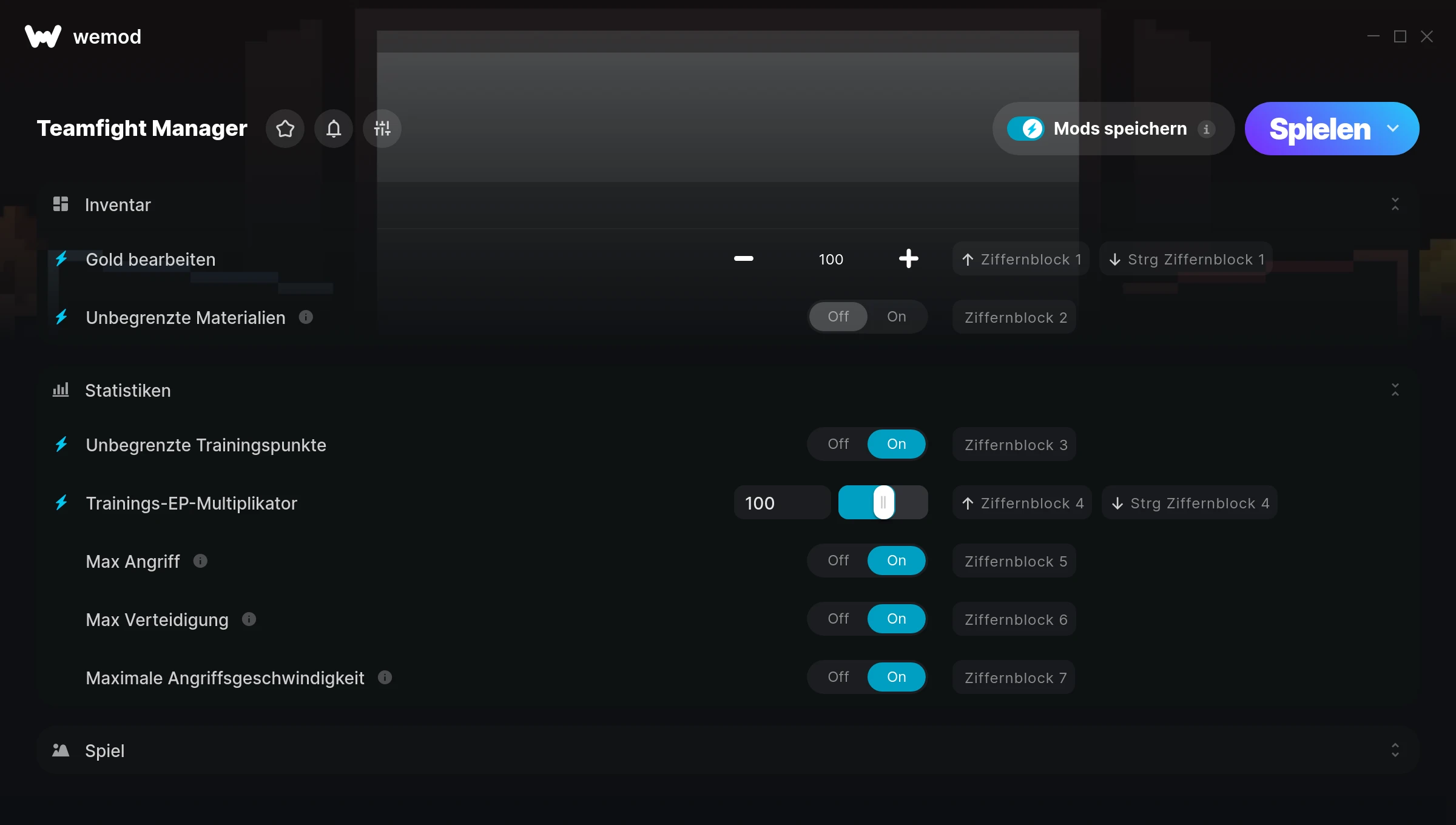How do I use the cheats in Teamfight Manager?WeMod will safely display all of the games on your PC. Open a game from the list and simply press play. After the game loads and once you’re in-game, you can start enabling different cheats!Will this work with my game version?WeMod uses advanced technology to detect the game version you’re running and will let you know if it’s supported. If it’s not, you will still have the option of giving it a try or requesting an update!