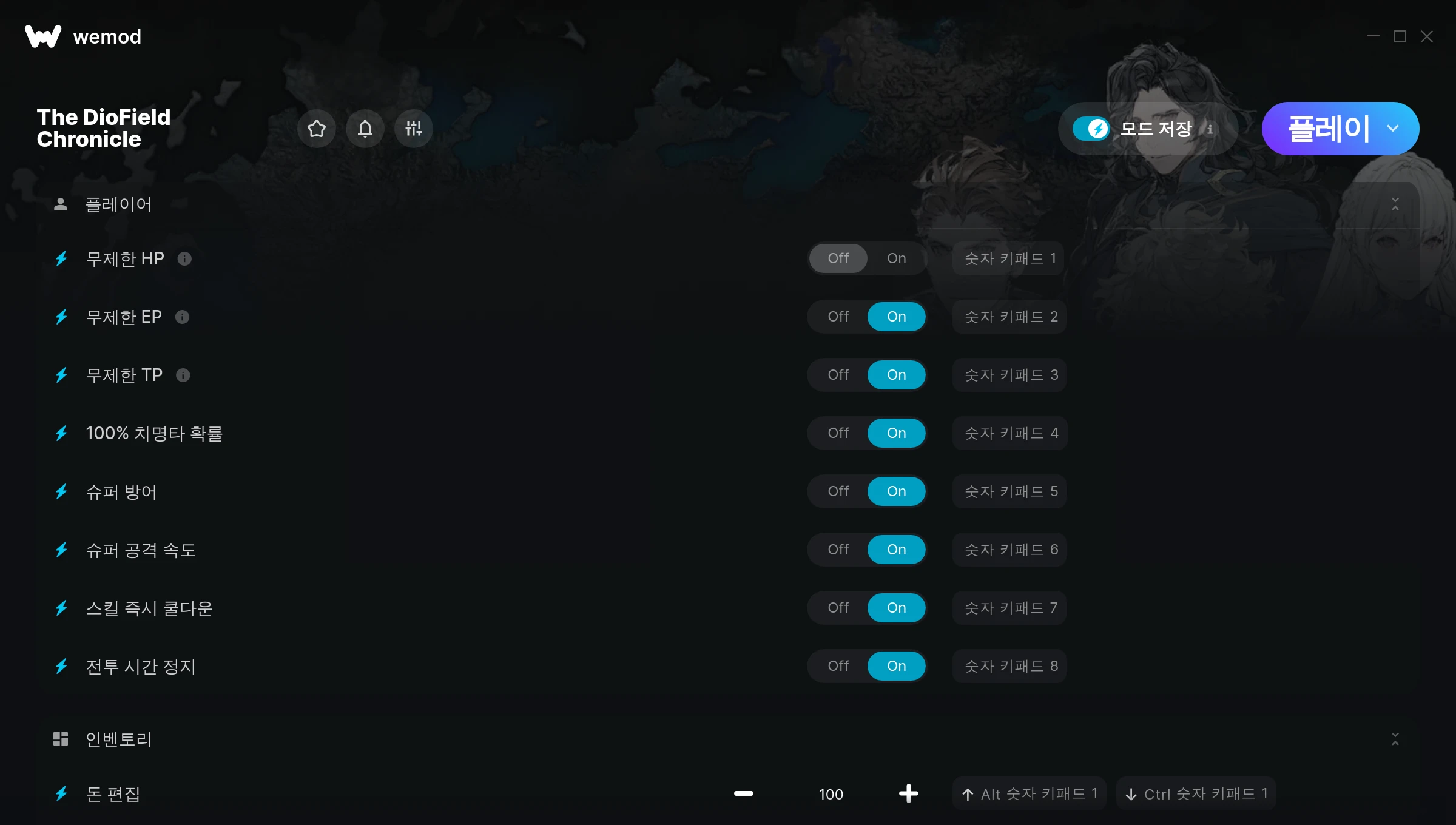 How do I use the cheats in The DioField Chronicle?WeMod will safely display all of the games on your PC. Open a game from the list and simply press play. After the game loads and once you’re in-game, you can start enabling different cheats!Will this work with my game version?WeMod uses advanced technology to detect the game version you’re running and will let you know if it’s supported. If it’s not, you will still have the option of giving it a try or requesting an update!